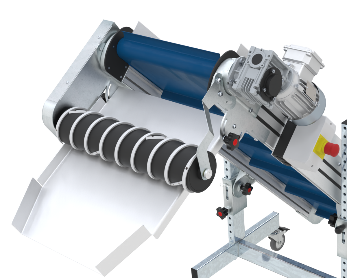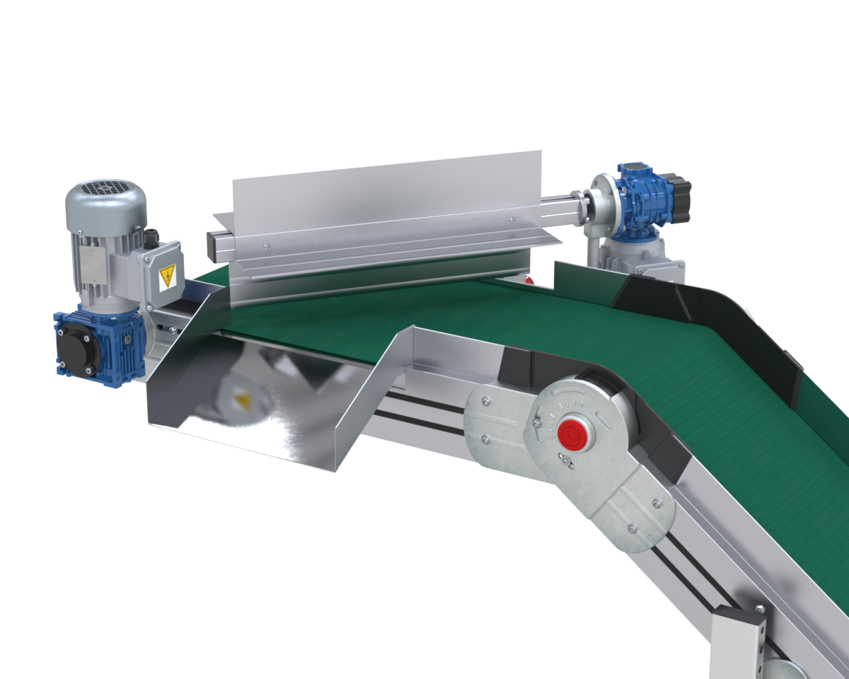 Maquinaria para transportar piezas plásticas, goma, coladas y metales, hay versiones aptas para fundición. Las mismas pueden ser horizontales fijas, o con una inclinación regulable, alcanzando ángulos de hasta 60° con incrementos de 7,5°.