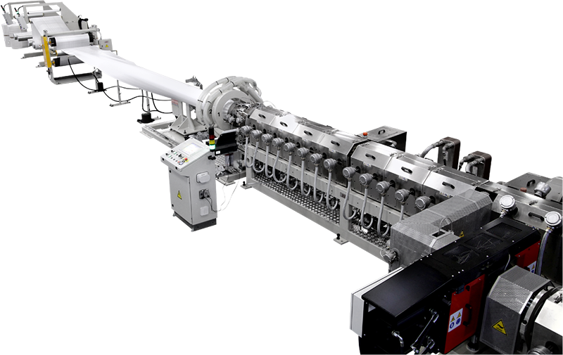 Líneas completas para la extrusión de láminas, chapas, perfilies rígidos y espumados y chapas alveolares, onduladas y corrugadas.